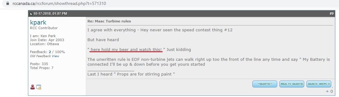 Now consider the following posts on the RC Canada website. The first post (https://www.rccanada.ca/rccforum/showthread.php?t=114544&highlight=the+second+electric+jets+event+in+Canada&page=5) shows the following statements.